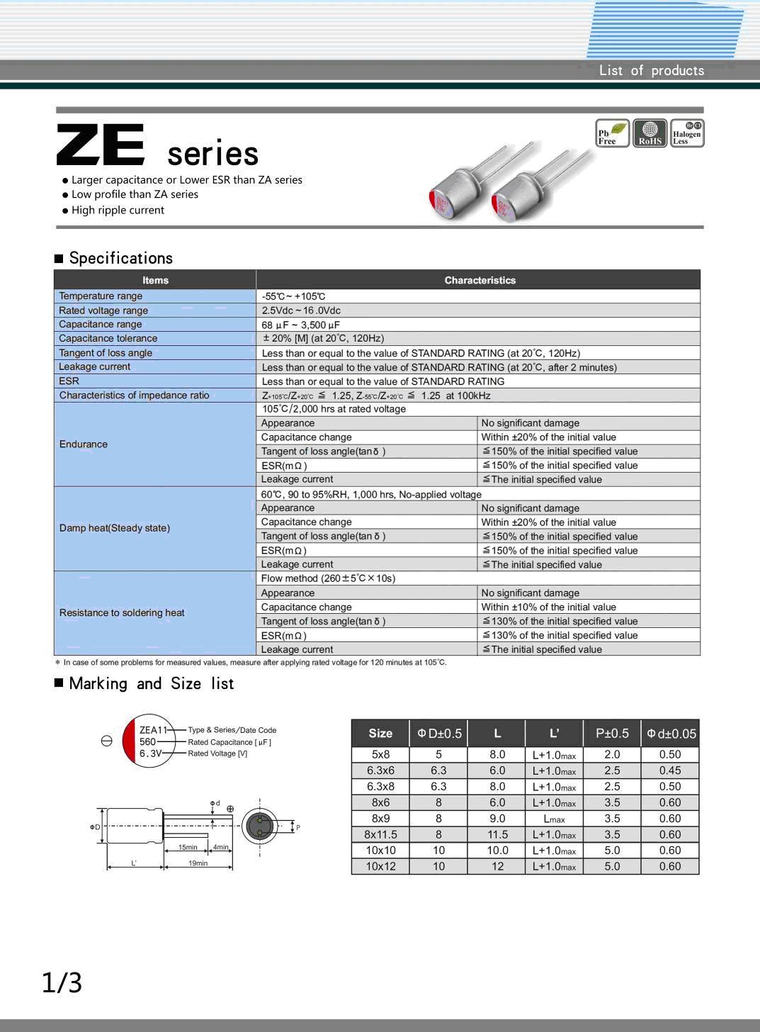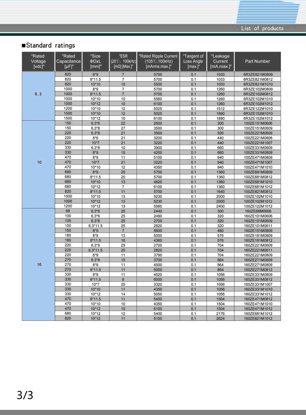 ZE系列2.5~16V,68UF~3500UF固态电容器